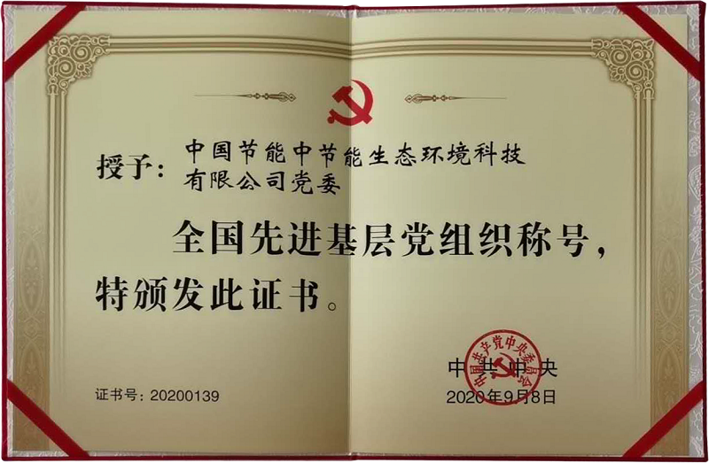 中国节能下属中节能生态环境科技有限公司荣获全国先进集体,中节能生态环境科技有限公司党委荣获全国先进基层党组织。