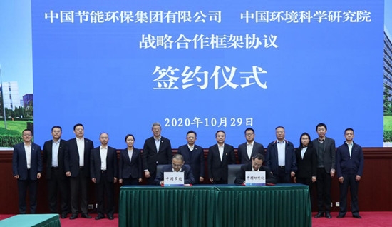 10月29日,中国节能环保集团有限公司与中国环境科学研究院(以下简称中国环科院)进行交流座谈并签署战略合作协议。集团公司党委书记、董事长宋鑫,中国环科院院长李海生参加座谈并共同见证签约仪式。集团公司副总经理刘大军,中国环科院副院长宋永会分别代表双方签署战略合作协议。