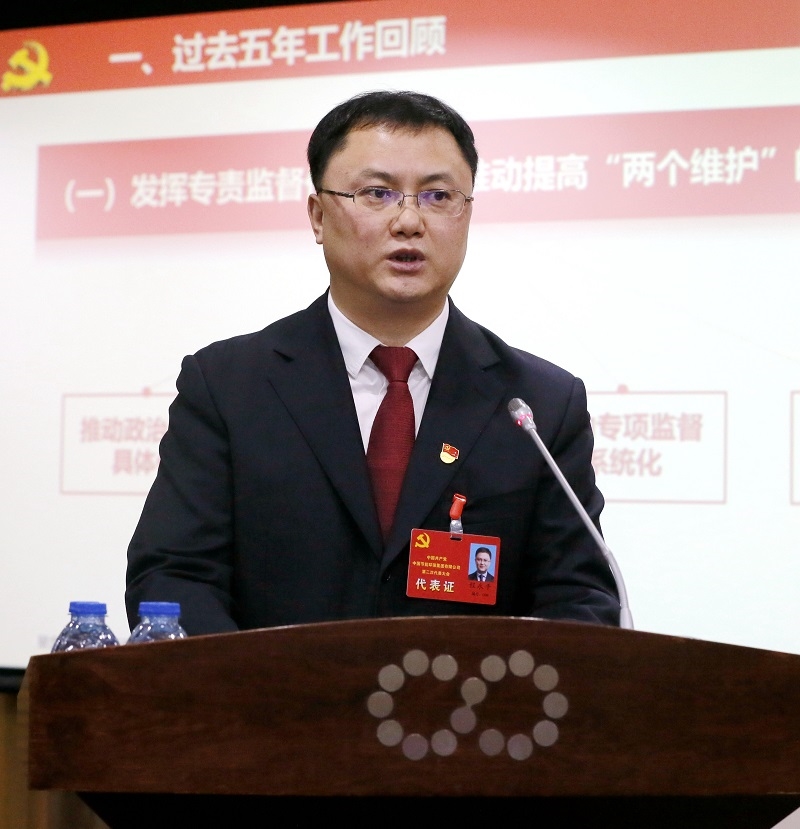 集团公司党委常委、纪委书记程永平代表集团公司纪委向大会作了题为《突出监督首责,强化执纪问责,坚定不移推动中国节能全面从严治党向纵深发展》的工作报告。报告全面回顾了五年多来纪委工作取得的成绩,总结了工作经验和体会,并对未来五年的工作任务作出安排:一要不断增强运用思想引领、理论武装,践行“两个维护”,履行“两个责任”、推进全面从严治党的自觉性坚定性,推动贯彻落实习近平总书记重要指示批示更加自觉坚定;二要着眼新形势下集团党建工作的要求,通过深化纪检监察体制改革,优化集团监督体系,整合监督资源,促进大监督格局更加健全完善;三要牢牢抓住监督这个基本职责、第一职责,突出强化日常监督,深化专项监督,强化权力运行的制约和监督,完善容错纠错机制,以高质量监督促进高质量发展;四要持之以恒落实中央八项规定精神,在巩固深化整治形式主义、官僚主义上有新成果,在深化重点问题治理上有新突破,在组织监督、群众监督上有新举措,在加强宣传引导上有新成效,驰而不息纠治“四风”,巩固深化作风建设成效;五要把“严”的主基调长期坚持下去,把织密制度笼子作为不能腐的关键,把强化思想自觉作为不想腐的根本,持续推进“三不”跃升,巩固和发展反腐败斗争压倒性胜利;六要持续加强纪检队伍思想政治建设,推进干部队伍专业化建设,坚持刀刃向内,防治“灯下黑”,打造一支高素质专业化纪检干部队伍。