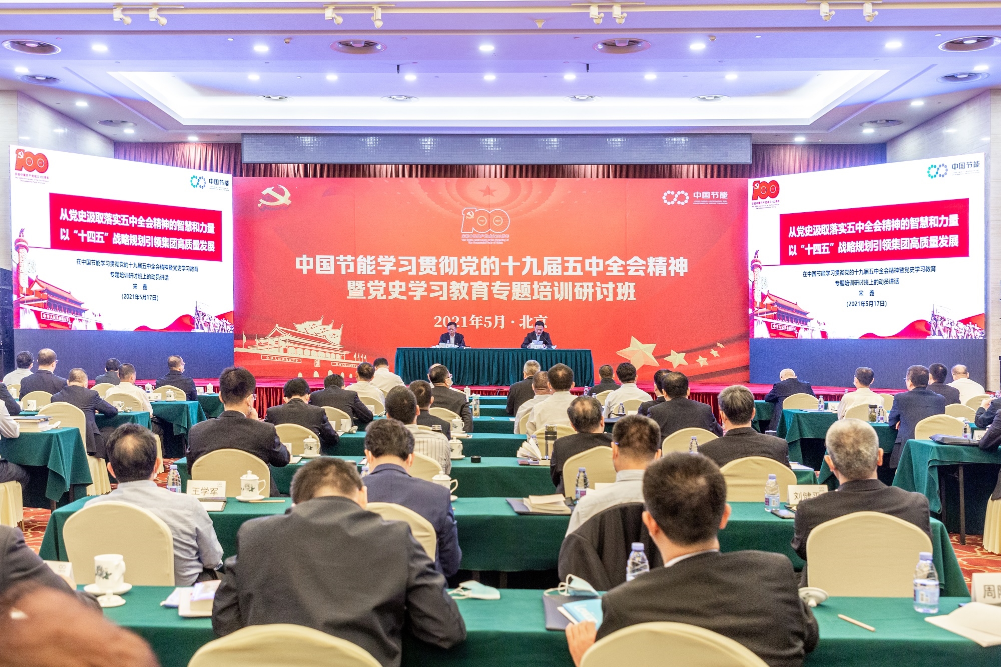 为深入学习贯彻习近平总书记重要讲话精神,深刻理解立足新发展阶段、贯彻新发展理念、构建新发展格局,推动党史学习教育走深走实,锚定“十四五”战略规划目标任务,加快推进集团公司高质量发展,5月17日至21日,中国节能党委举办学习贯彻党的十九届五中全会精神暨党史学习教育专题培训研讨班。集团公司党委书记、董事长、党史学习教育领导小组组长宋鑫作开班动员,并以专题党课形式讲授第一课。集团公司党委副书记、总经理余红辉主持开班式。
