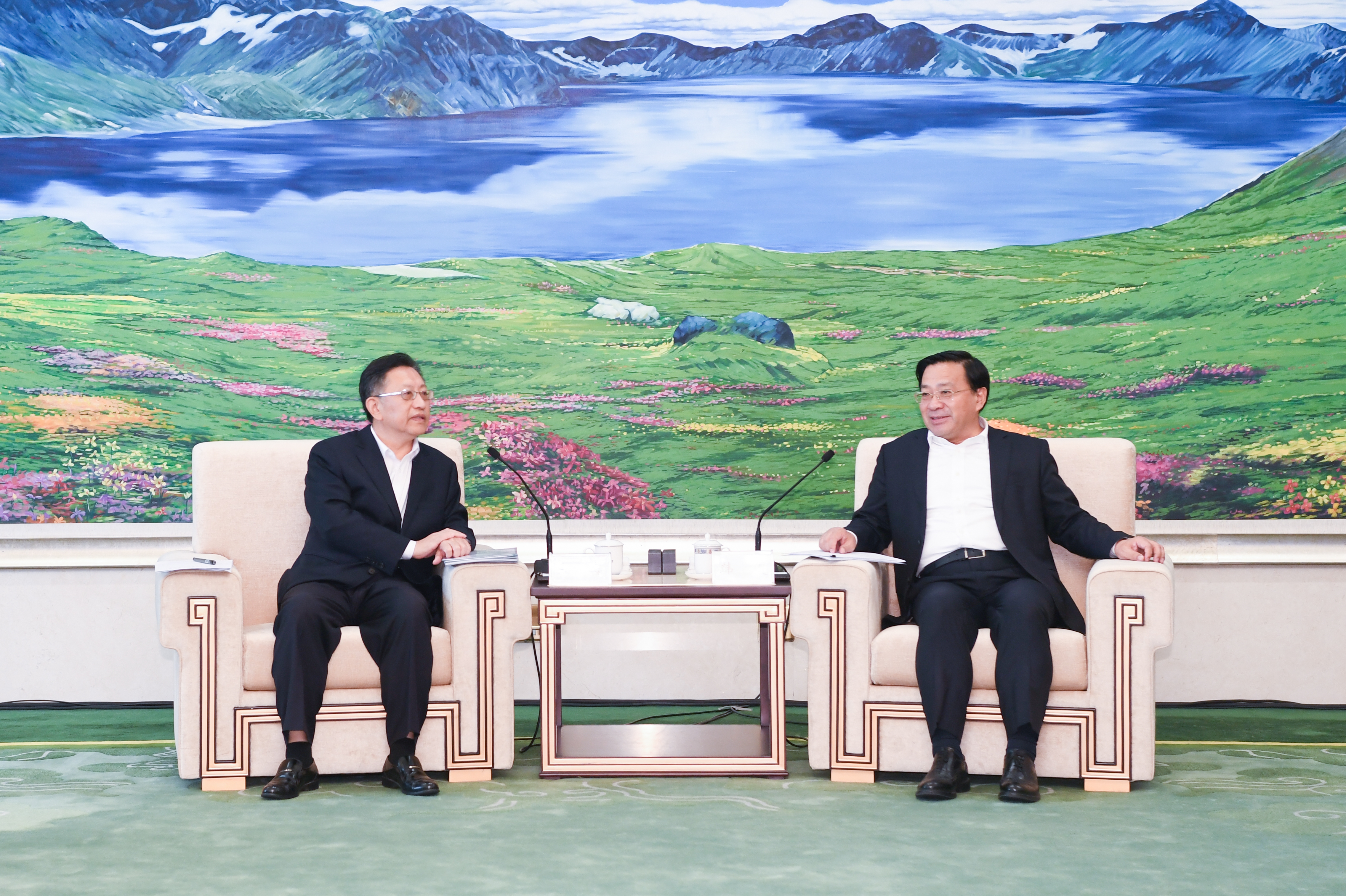 吉林省发改委、自然资源厅、生态环境厅、商务厅、能源局负责同志,集团公司总经理助理曾武,办公室、合作部,新时代集团、中地集团、风电公司、生态产品研究中心、大地公司负责人参加会谈。