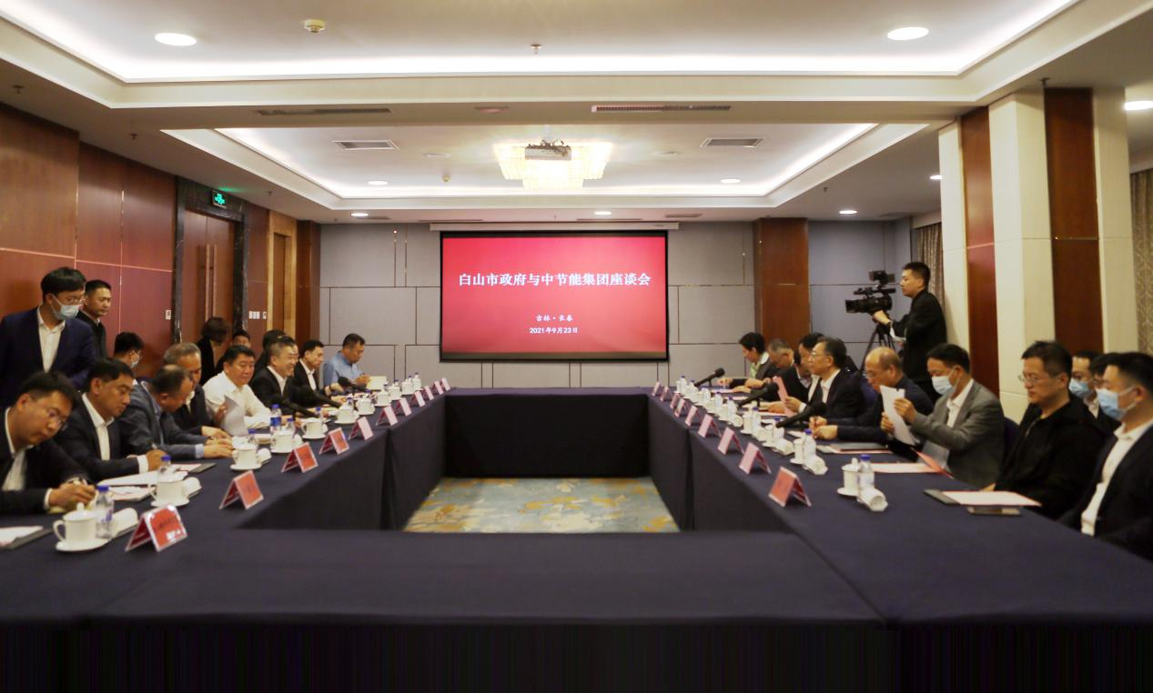 9月23日,中国节能党委书记、董事长宋鑫一行在吉林长春与吉林白山市委书记谢忠岩、市长马坚举行座谈会。双方就进一步加大清洁供能、大健康产业、尾矿综合利用等领域合作进行深入交流。