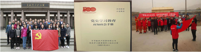 中节能实业党委认真学习贯彻习近平总书记在党史学习教育动员大会上的重要讲话精神,以高度自觉抓好党史学习教育,在全系统迅速掀起学习教育热潮。一是抓实规定动作。公司党委印发党史学习教育实施方案,各子公司结合实际进一步细化措施。统一为全体党员发放《习近平新时代中国特色社会主义思想学习问答》《论中国共产党历史》《中国共产党简史》学习书籍,并通过党支部书记讲党课、“三会一课”、主题党日等形式,开展学习30多次。二是丰富自选动作。公司党委开设“首座讲堂”,利用宣传屏、党员活动室等宣传阵地,线上线下齐发力,努力营造良好学习氛围。各基层党支部结合实际开展各种形式的主题实践活动,常州公司党支部以“坚守初心,同心向党”为主题,依托《人民日报》新媒体平台、中央党史和文献研究院网站,利用公司微信群等渠道,组织开展“百年党史天天学”活动;上海公司党支部通过线下《求是》《人民日报》等报刊的阅读结合线上每日学习分享——《党史故事100讲》,使党员深切感受党的光辉历程;嘉善公司党支部开展党史学习教育读书沙龙,定期组织学习交流,开展党史知识测试。